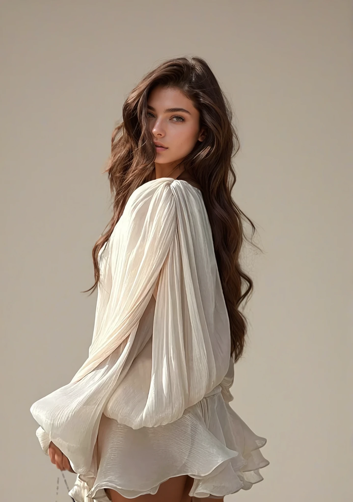 - Design: Weite Ärmel, verspielte Rüschen & Taillenbindung